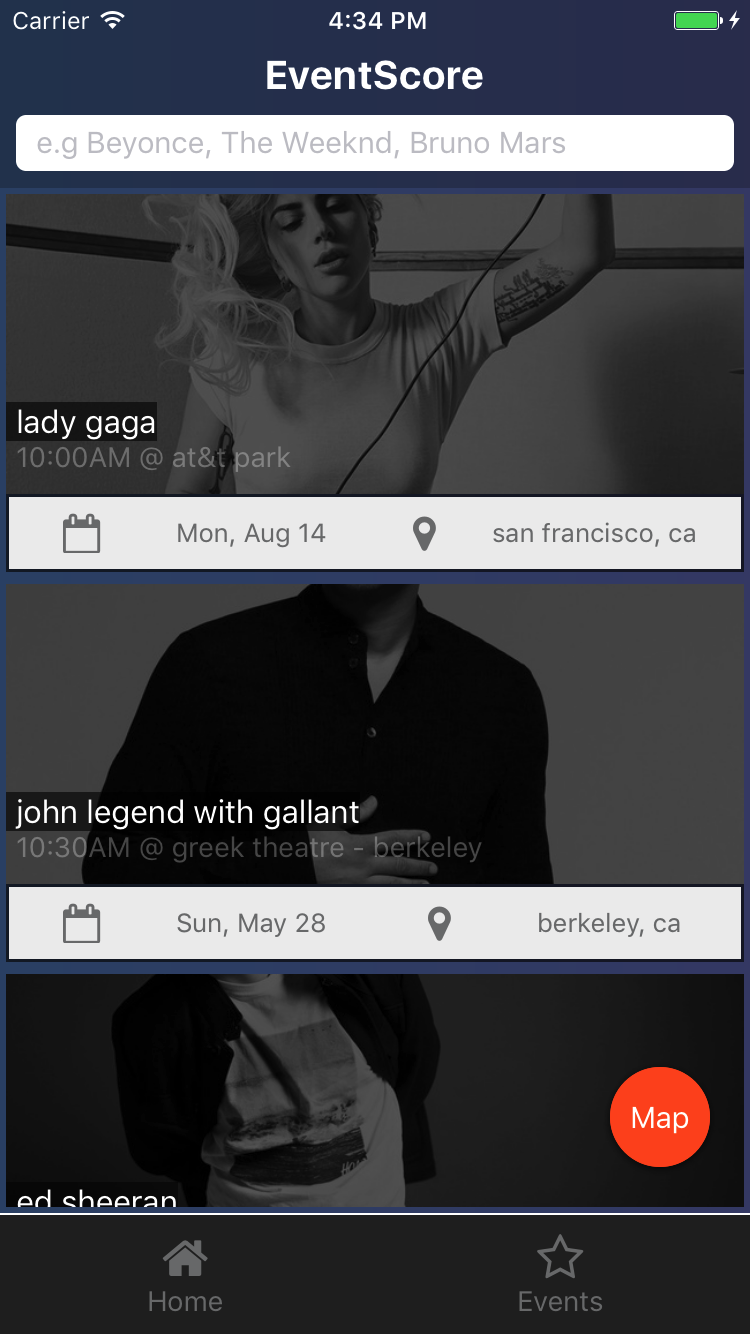 As self-proclaimed music gurus, we decided that discovering new music is best when heard live. After countless of hours scrambling around and pitching ideas left-to-right, we ended up with Eventscore - A concert discovery tool built based on geolocation and social perception.